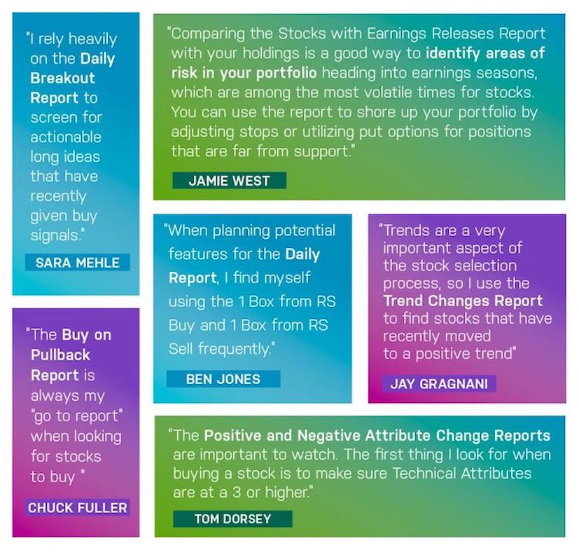 The Database reports page provides access to select reports created each evening. The drop down box above the report list allows you to filter the chosen report to the type of security (Stock, ETF, Index, Mutual Funds, Commodity) you want. When the report is selected additional filtering will be available above the report table. Use the Region/Country selections in the top left to see the reports for different regions and countries.